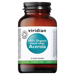 Viridian 100% Organic Freeze Dried Acerola Powder is made from Acerola cherries and is an easily absorbed form of Vitamin C.